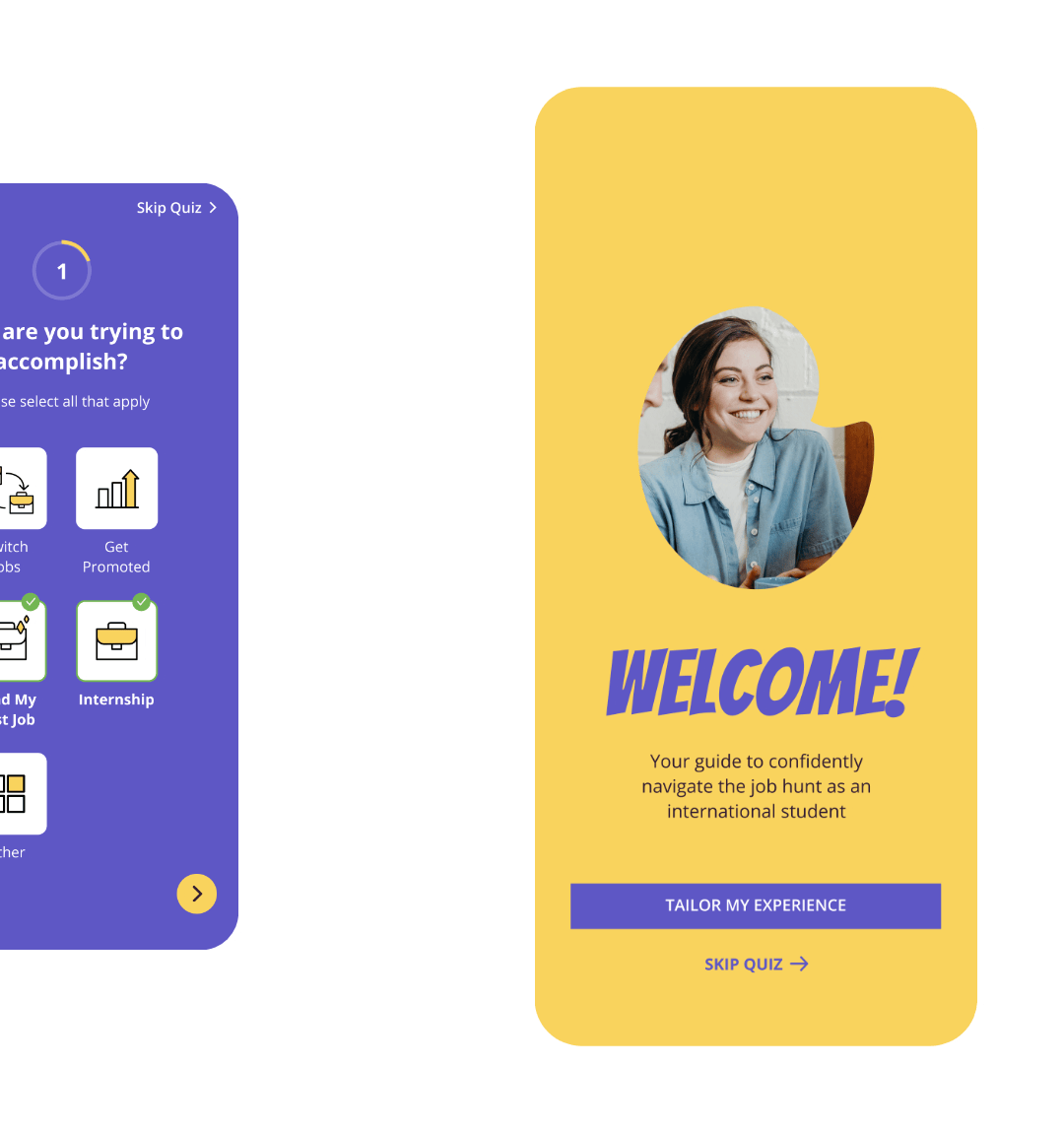 This semester-long project involved developing a digital product/service from research to high-fidelity screens, but not every step was as detailed. If revisited, I would conduct interviews with adjacent communities (advisors, recruiters, etc) to gain deeper insights and further explore the application's profile and community sections, which have significant potential.